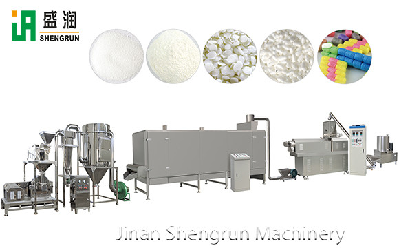 Наша линия по производству модифицированного крахмала использует кукурузный крахмал, крахмал тапиоки, картофельный крахмал и т. д. в качестве основного сырья и использует двухшнековый экструдер в качестве основного оборудования с технологией экструзии. Высокая температура и высокое давление сырья в экструдере и усилие сдвига при двухшнековом смешивании заставляют крахмал клейстеризоваться и изменять исходные физические и химические свойства крахмала, чтобы производить модифицированный крахмал с более превосходными свойствами, делая его пригодным для производственных и бытовых нужд, имеет более широкую потребительную стоимость. Модифицированный крахмал, полученный методом экструзии, широко используется во многих отраслях промышленности, таких как пищевая, кормовая, биофармацевтическая, косметическая, литейная, строительная, текстильная, бумажная и т. д., и имеет широкие рыночные перспективы.